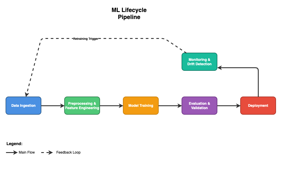 These phases collectively form what AWS and Databricks describe as the ML Lifecycle—a cyclic process where every iteration improves the model’s reliability and the organization’s learning capability.
