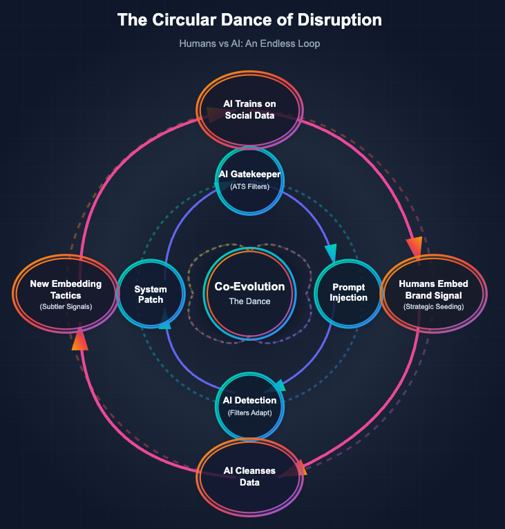 AI learns from public data → humans plant their signal in that data → AI filters noise → humans embed subtler signals → repeat.